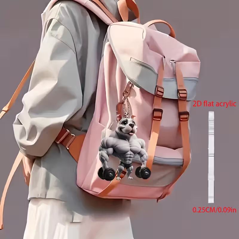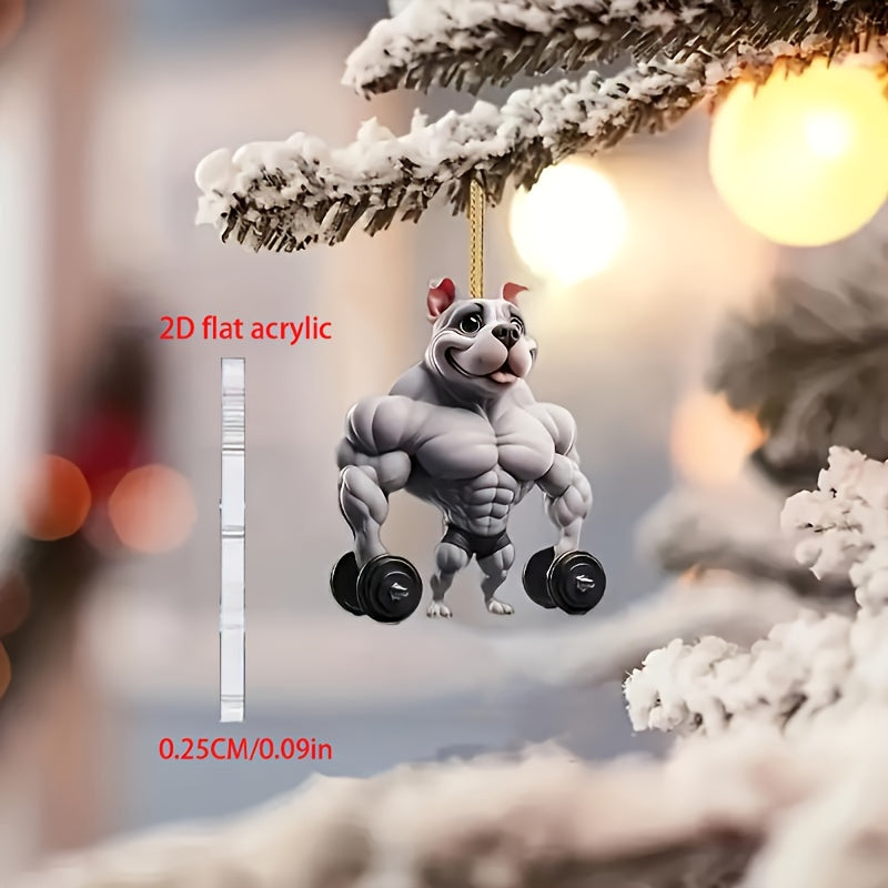 2D Flat Muscular Bulldog Acrylic Car Decoration