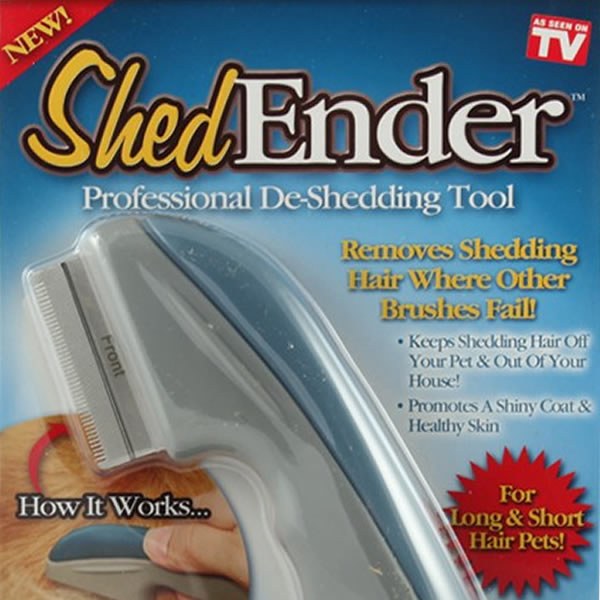Quick & Easy Way to Control Pet Shedding! Shed Ender is the professional de-shedding tool that removes shedding hair trapped in your pet's undercoat. The specially designed head grabs and removes loose shedding hair, revealing your pet's shiny, healthy top coat. It will not cut the hair or hurt your pet. Now you'll remove shedding hair before it ends up all over your house, furniture and clothes. Your pets will love it and you'll be amazed to see how much hair was trapped in the coat.